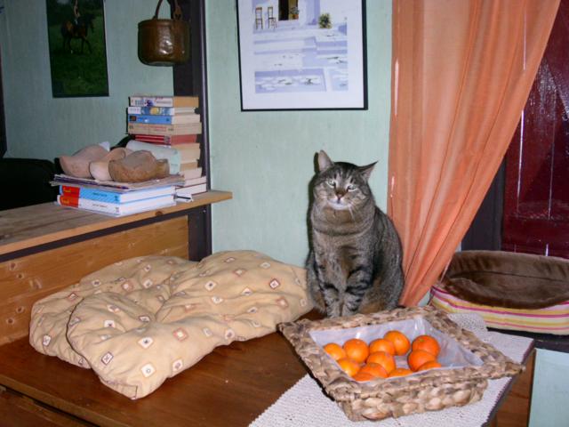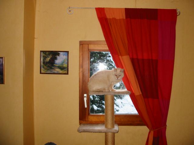 Auch der Kater "Diego" hat sich gut eingelebt. Warum er in einem Tierheim gelandet ist, bleibt uns unerklärlich. Er ist mit allen gut verträglich, absolut verschmust und liebenswert. Vielleicht war es seine Besonderheit, die ihn auf die Straße gebracht hat: Er öffnet Kühlschränke und räumt die Leckerbissen aus und sein Lieblingsplatz ist beim Menschen in der Küche. Auch seine Angewohnheit, seine Kratzspuren an Tapeten zu hinterlassen, hat sicher seine vorherigen Besitzer nicht katzenfreundlich gestimmt. Wir haben jetzt keine Tapeten mehr im Esszimmer, sondern einen katzenfreundlichen Anstrich vorgenommen. Vielleicht hat ihm die Farbe der Tapeten nicht gefallen, denn jetzt nimmt er zur Maniküre seiner Krallen die Kratzbäume. Zufriedenheit auf beiden Seiten......!!