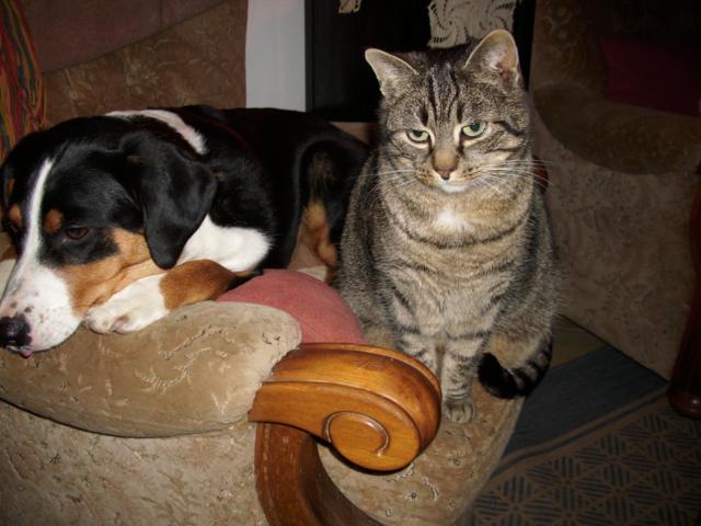Ein einträchtiges Paar sind die Hündin "Julie" und Kater "Karlchen". Eine besondere Liebe scheint sie zu verbinden.