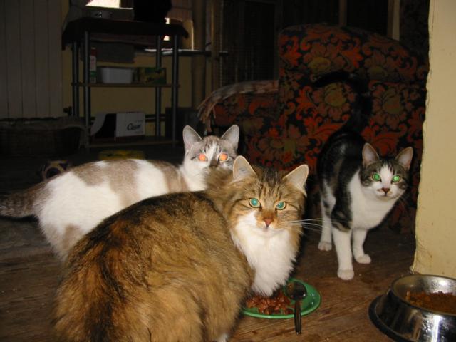 Auch der Neuankömmling im letzten Herbst, die neunjährige Kätzin "Kimba" scheint hier das Glück ihres Lebens gefunden zu haben. Trotz ihrer Taubheit ist sie munter alleine unterwegs und kehrt abends zum Essen zufrieden zurück, um dann zur Nacht das Kopfkissen mit mir zu teilen. Allerdings hatte sie anfangs Schwierigkeiten: denn wenn Sie am Ziel ihres Ausfluges angekommen war, verharrte sie dort und erwartete abgeholt und nach Hause getragen zu werden. Nun, durch ihre weiße Fellfarbe war sie leicht auffindbar. Aber mittlerweile traut sie sich zu, den Rückweg alleine zu gehen.