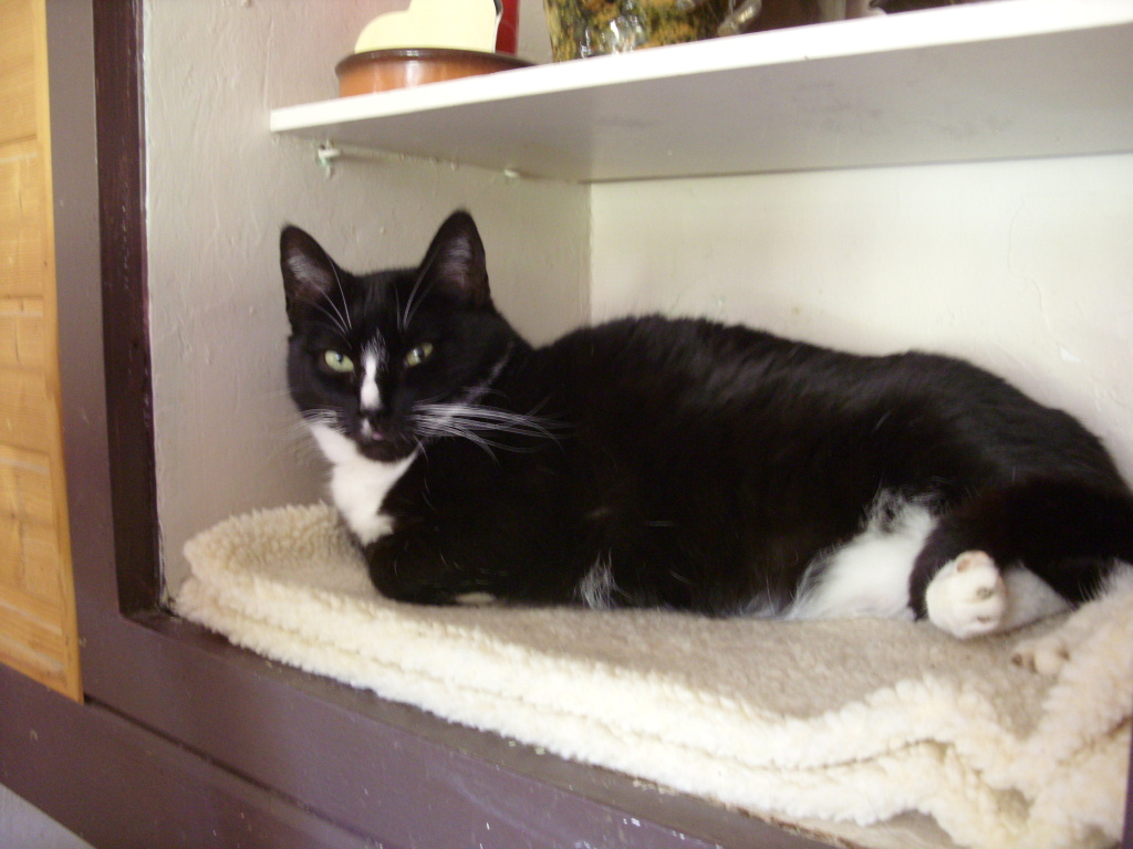 Babette lebt seit 2012 bei uns. Sie wurde in einer Wohnsiedlung beobachtet, wie sie immer wieder unter einen Reisighaufen verschwand und die Vermutung, dass dort ihre Babys versteckt sind, hat sich bewahrheitet. Sie konnte eingefangen werden und kam vollkommen abgemagert, mit 3 Babys im Gepäck zu uns. Sie hatte Fieber und eine Erkältung und die 3 Kleinen schauten mühsam aus verklebten Augen in die Welt. Sie erschienen mehr tot als lebendig und wir hatten wenig Hoffnung, dass sie überleben. Nach 3 Wochen waren die Erkrankungen überstanden, jedoch konnte bei 2 Kätzchen jeweils ein Augenlicht nicht gerettet werden. Babette war eine gute Mutter. Wir mussten feststellen, dass ihre Gehbehinderung die Folge einer nicht behandelten Fraktur war. Ja, so konnte sie nur beschwerlich Futter für die Babys finden und musste sich wohl mit Resten aus dem Müll zufrieden geben. Das ist sicher auch der Grund ihrer chronischen Bauchspeicheldrüsenerkrankung.