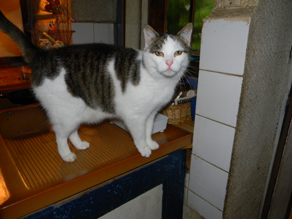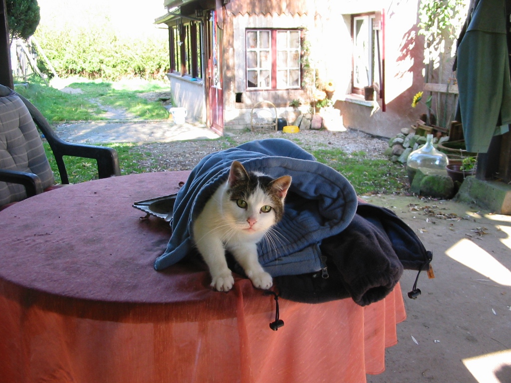 Minette wurde wegen familiärer Veränderungen zu uns gegeben. Sie ist eine wahre Träumerin und der Philosoph unter unseren Katzen. Sie macht kurze Spaziergänge, sitzt oftmals stundenlang auf einem großen Granitstein und blickt in die Ferne, um dann wieder im Heu zu ruhen.