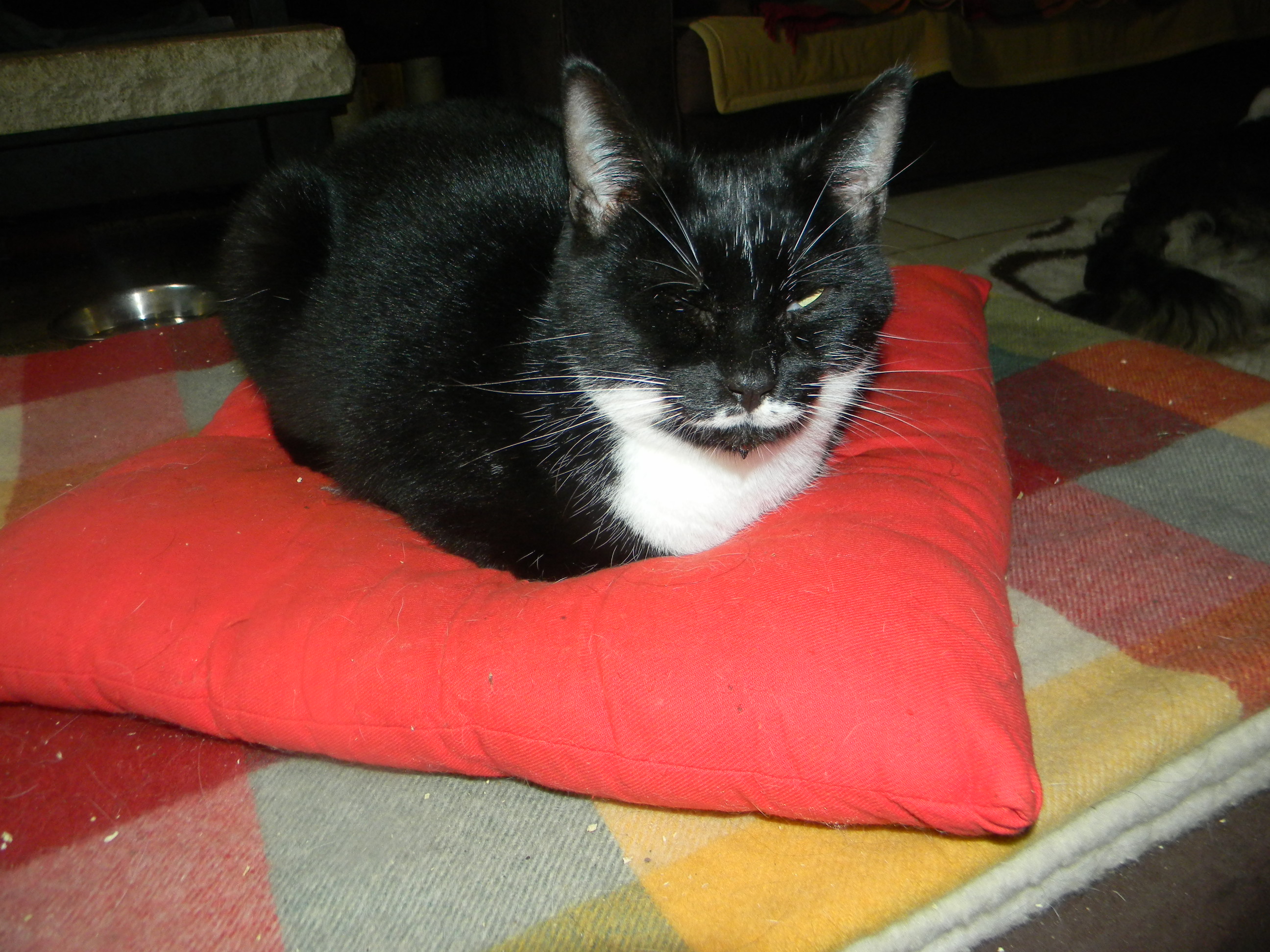 Nino ist einer der Findlinge, die ich der Katzenmutter Sophie "gestohlen" hatte. Lange Zeit hatte er mit den fiebrigen Erkrankungen zu kämpfen und es blieben Verwachsungen an einem Auge zurück. Der Tierarzt hatte dies zwar chirurgisch gelöst, aber sie entstanden nach einiger Zeit neu und so blieb eine Linsentrübung zurück. Es sind kleine Schönheitsfehler und darum fanden sich keine Interessenten für dieses flippige Kätzchen.