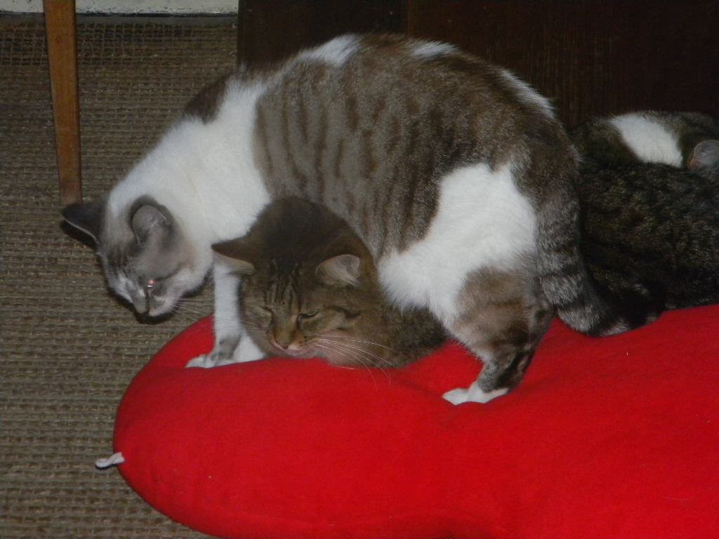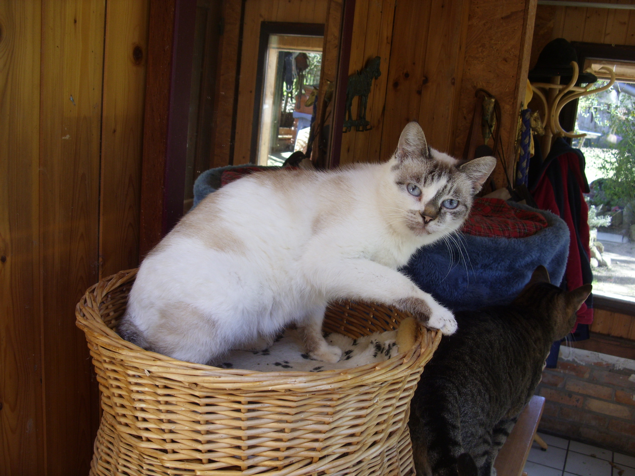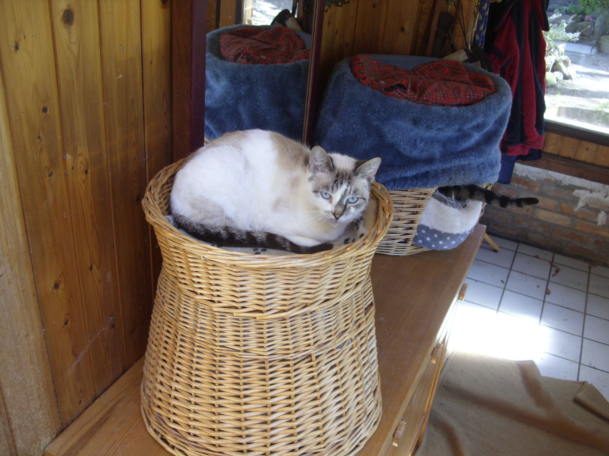 Wenn in der Küche an alle Katzen, die es möchten, die abendlichen Schinkenwürfel verteilt werden, sitzt sie bettelnd mit dabei und erhebt nicht nur fordernd ein Pfötchen sondern auch lautstark ihre Stimme, die einem verrosteten Scharnier gleicht. Ihr Aufenthaltsort ist immer in der Nähe des Hauses und des abends ruht sie ausgeglichen in unserer Nähe.