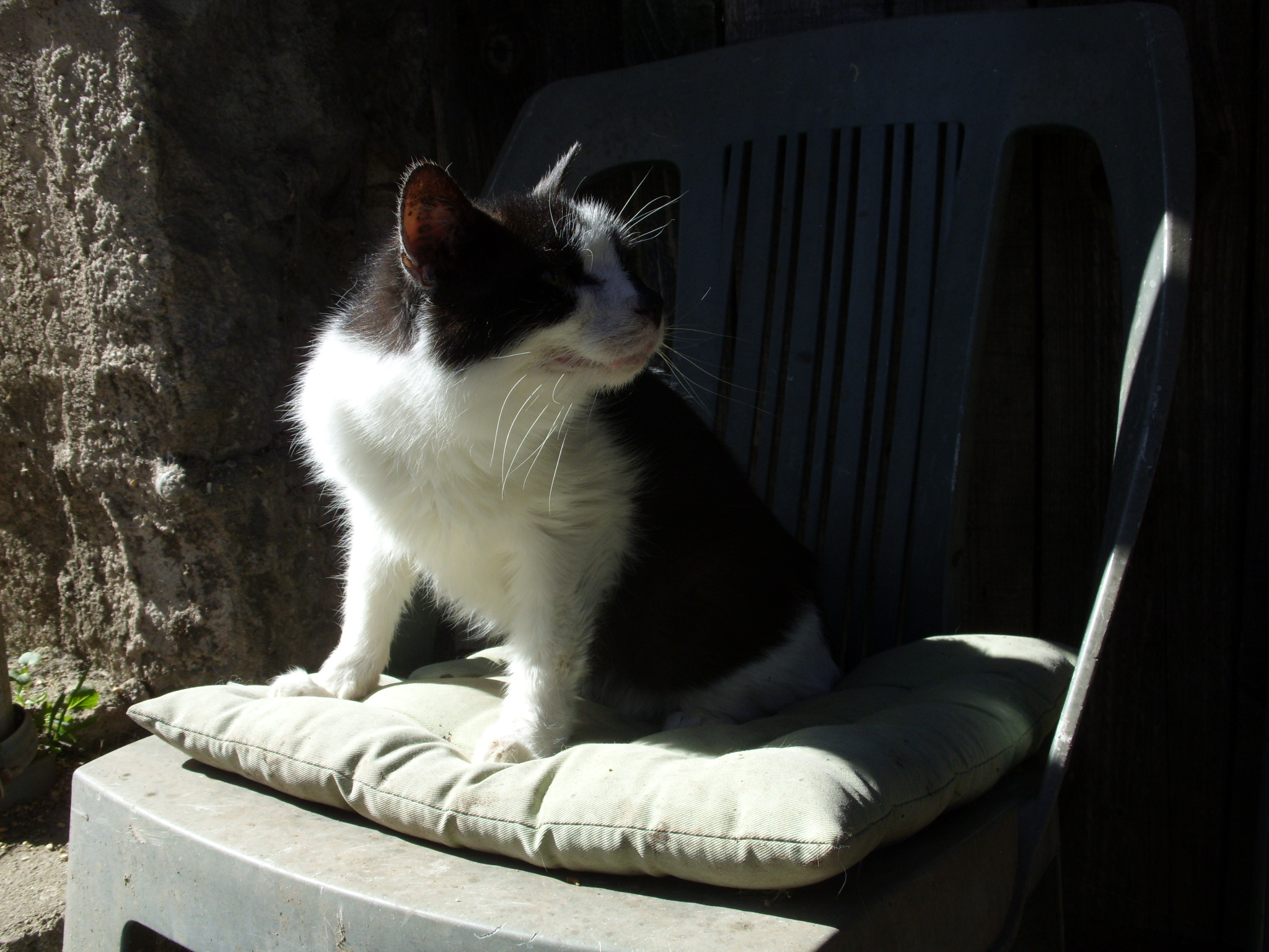Sie war 15 Jahre eine Wohnungskatze und schon am 3. Tag schaffte sie es bei uns unbemerkt ins Freie zu gelangen. Wir waren erschrocken, fühlten uns schuldig und ängstlich, ob sie wieder zurückfindet? Ihr Spaziergang war nur kurz zum Schnuppern gedacht, und selbständig ging sie wieder in ihr Katzenzimmer zurück. Sie schaute uns an, als wolle sie sagen: "macht euch keine Sorgen, auf mich könnt ihr euch verlassen". Seitdem gibt es den regelmäßigen Mittagsspaziergang - nur nicht bei Regen - und ansonsten ist das gesamte Haus ihr Spielplatz.