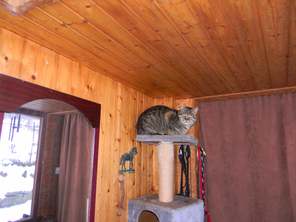 Wenn es die aufmerksamen Bürger nicht gäbe, dann hätten sicher einige Streuner keine Chance zu überleben. So auch Karlchen, dessen Mäusefanggebiet eine Gartenkolonie war. Dort beschlossen Menschen das Leben der Streuner durch Giftauslegen zu beenden. Aber Karlchen konnte gerettet werden und fand bei uns seine neue Heimat. Menschen sind seine Feinde geblieben. Er lebte bei uns jahrelang in einer verlassenen Hütte in der Nähe unseres Gehöftes und erst nachdem dort abgeholzt wurde, entschied er sich für einen warmen sicheren Platz bei unseren Ziegen. Dort gibt es auch Mäuse und die Futterplätze sind im angrenzenden Katzenhaus gut erreichbar. Und ab und an lässt auch das Vertrauen zum Menschen zu, dass man einen Katzenkorb als Ruhepol einnimmt und sich fotografieren lässt.
