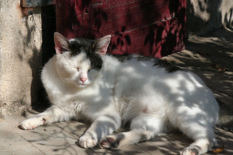 Hilflos rief die Familie an und bat um Aufnahme bei uns. Der Kater sei bösartig und greift ständig die 12-jährige Tochter an. Und das entspricht der Wahrheit. Erst beschmust er den Menschen, lässt sich gerne streicheln, um dann ohne Vorwarnung Zähne und Krallen zum Kampf einzusetzen. Auch verbeißt er sich beim Vorbeigehen gerne in die Waden des Menschen oder Hundes. Die anderen Katzen machen eine weiten Bogen bei der Begegnung.